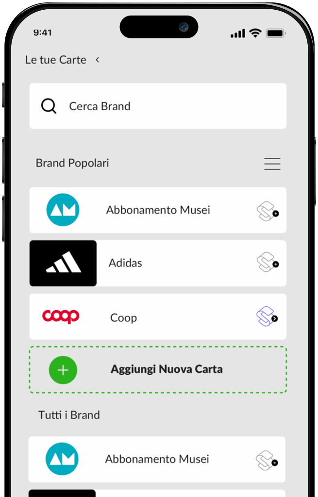 Tutte le tue carte fedeltà,